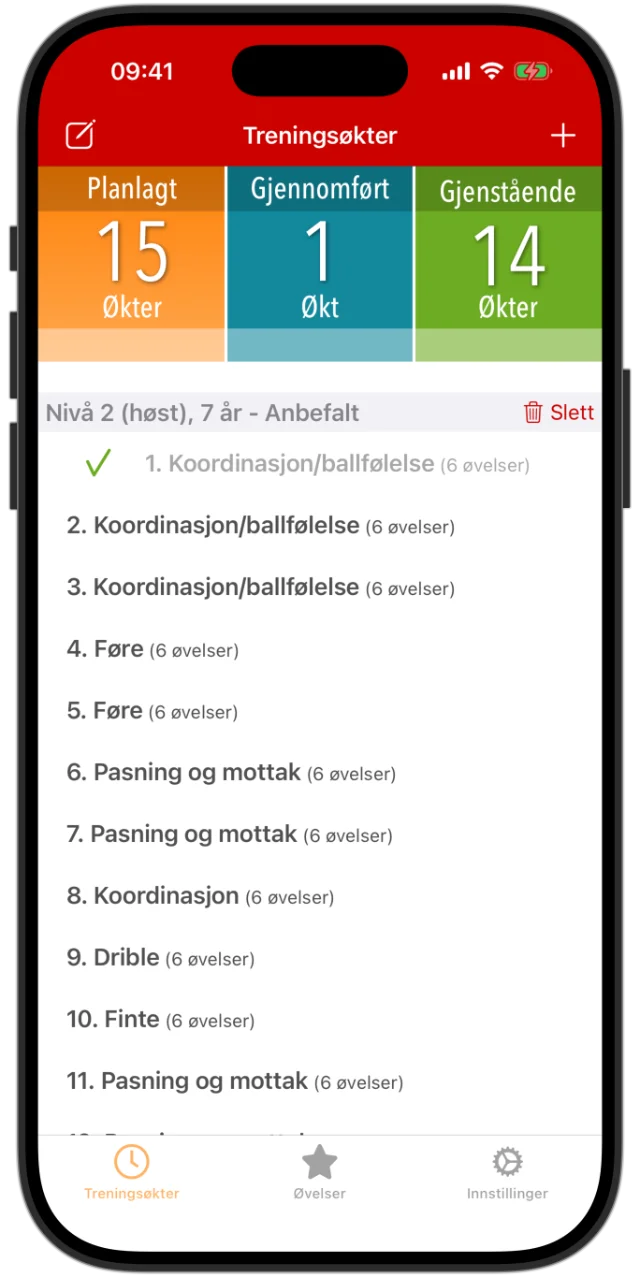 Deretter får du presentert helt ferdige treningsøkter, tilpasset nivået til ditt lag. Øktene er satt sammen på en fornuftig måte, med fokus på mestring, utvikling og spilleglede – akkurat slik barne- og ungdomsfotball skal være.